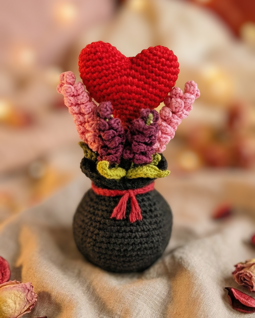 Handmade Crochet Valentine Heart Flower Bouquet – Romantic Home Decor & Gift